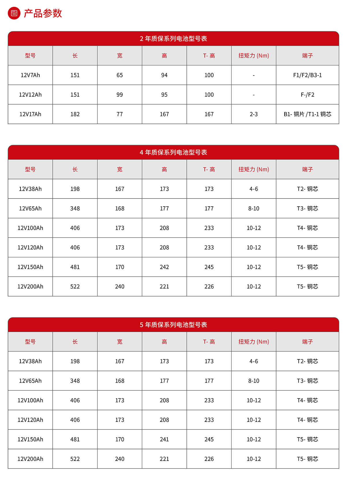 DW 系列全能型冲网蓄电池,创新工艺代表性产品,小密型号可选一年/ 两年质保,中大密型号可选三年/ 四年/ 五 年原厂质保,依托过硬品质领军长质保赛道。