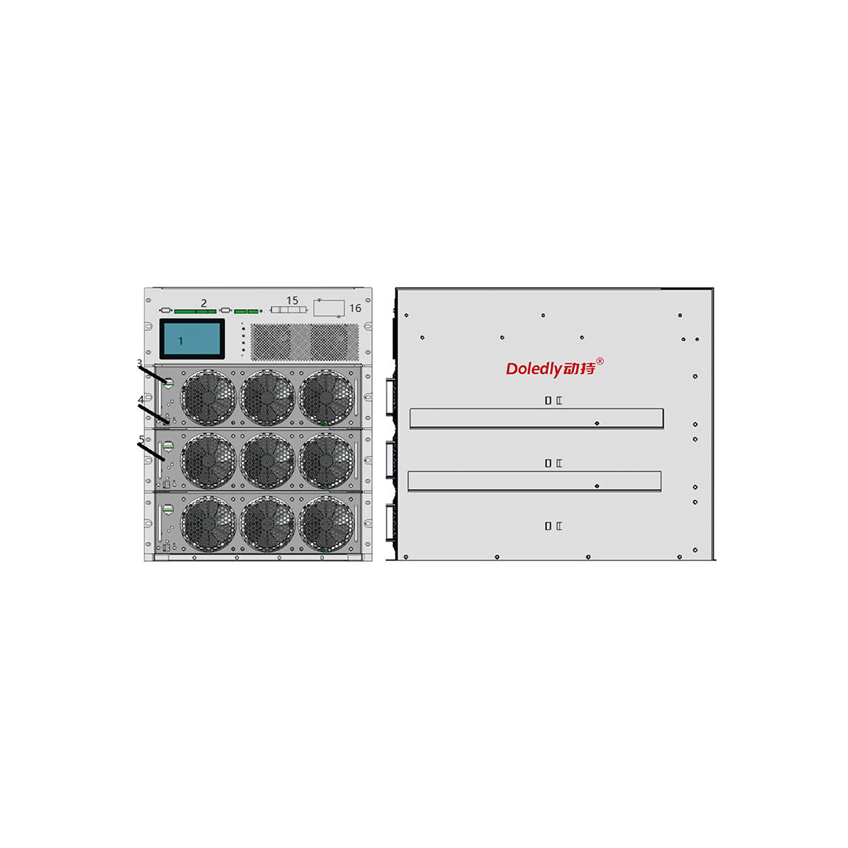 8、模块化设计: 模块容量30KW/50KW,最多4 个模块并联,最大功率200KW;
