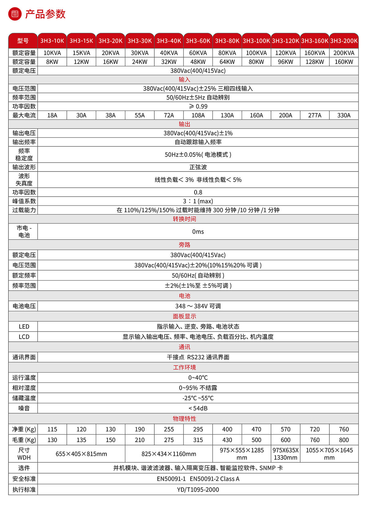 4、3H3- 系列UPS 采用先进可靠的控制技术,可提供性能可靠的热备份系统和多达六台的直接并机系统;